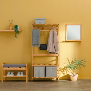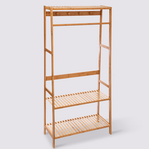 Appendiabiti in legno bambù da terra con 2 ripiani - Gaia