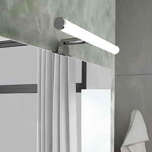 L'applique da bagno LED Leo da 40 cm è progettata per un'installazione elegante e funzionale sul bordo superiore dello specchio.