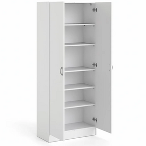 Questo armadio è dotato di due ante che si aprono per rivelare un interno spazioso, composto da cinque ripiani. Questa configurazione consente di riporre una varietà di oggetti, dai vestiti agli accessori, garantendo un’ottima organizzazione.