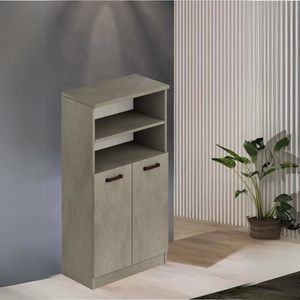 Questo mobile elegante, disponibile in diverse colorazioni, ha un'altezza di 130 cm e presenta due ante che nascondono ripiani interni, perfetti per riporre in modo ordinato numerosi paia di scarpe.