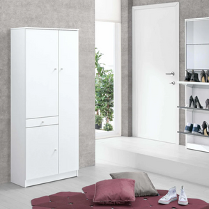 Armadio multiuso 77x147H in legno bianco laccato 3 ante 1 cassetto e ripiani interni
