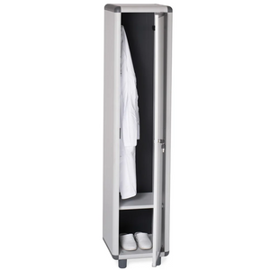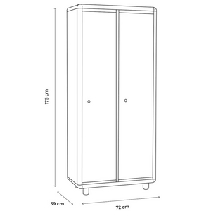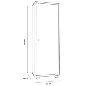 Caratterizzato da un design efficiente, l'armadio Garo offre una chiusura a chiave per garantire la sicurezza degli oggetti personali. All'interno, è dotato di appendibiti per organizzare abbigliamento e accessori, mentre il piano inferiore offre ulteriore spazio per riporre scarpe o borse.
