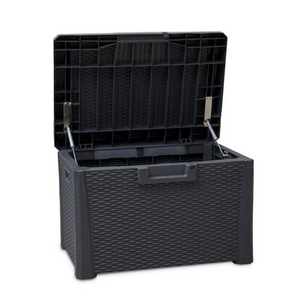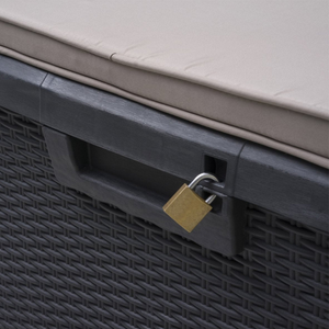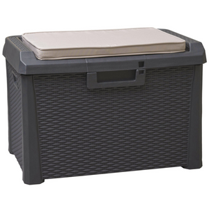 Baule cassapanca contenitore da esterno o interno antracite "Torino Compact" in resina con finitura rattan dotato di cuscino