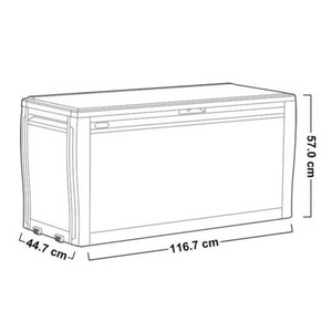 Il baule contenitore è realizzato in resistente resina antiurto, caratterizzato da una finitura che riproduce l'elegante effetto rattan. Con una capienza di 270 litri, questo contenitore è adatto sia per utilizzi interni che esterni.