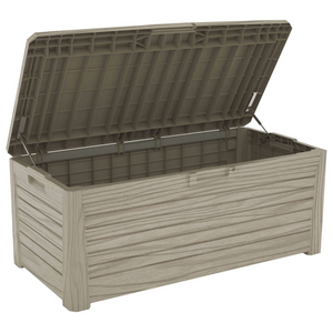 Baule contenitore multiuso "Canada Compact" grigio tortora per interno o esterno in resina con finitura doghe effetto legno