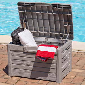 Baule contenitore multiuso "Canada" grigio tortora per interno o esterno in resina finitura doghe effetto legno