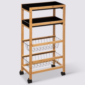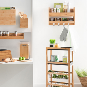 Il carrello da cucina Baki a 3 ripiani è la soluzione salvaspazio ideale per organizzare utensili, alimenti e accessori. Realizzato con struttura in bambù naturale e ripiani rimovibili, combina resistenza e praticità.