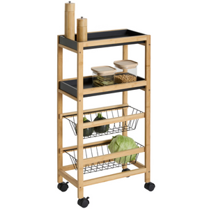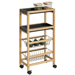 Carrello da cucina salvaspazio 3 ripiani con ruote in bambù - Baki