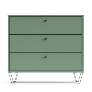 Il colore verde, sofisticato ed elegante, permette alla cassettiera di integrarsi armoniosamente in qualsiasi ambiente contemporaneo, aggiungendo un tocco di raffinatezza.