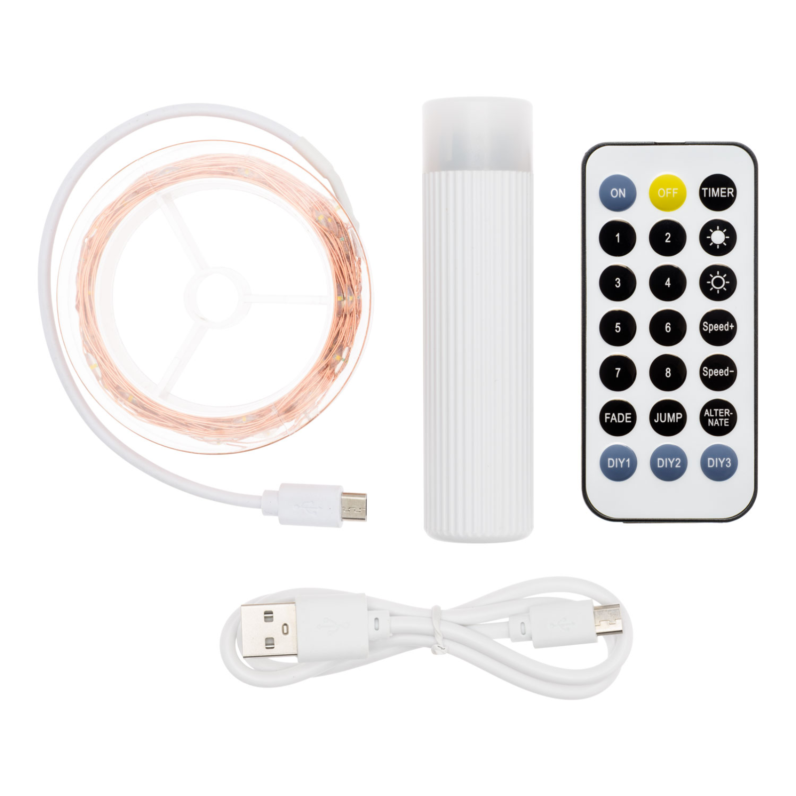 Catena luminosa 10mt 100 microled a batteria con telecomando e timer