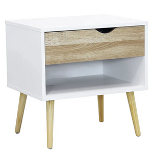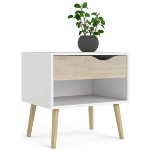 Comodino con 1 cassetto design moderno rovere e bianco - Svela