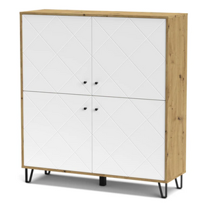 Credenza alta multiuso in legno 123x135H 4 ante e ripiani interni rovere e bianco - Linea Bolli