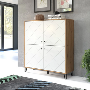 - Credenza alta multiuso in legno rovere e bianco