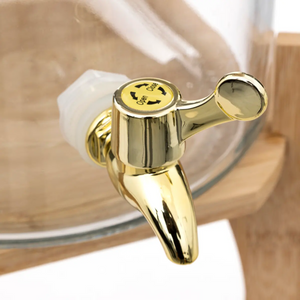 Il rubinetto permette di erogare facilmente le bevande senza schizzi, mentre il supporto in bambù aggiunge un tocco di naturalità e modernità.