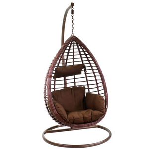 Dondolo pensile sospeso in polyrattan marrone con cuscino imbottito e supporto - Austin