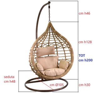 - Struttura in metallo e ovetto in polyrattan Ecrù.