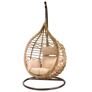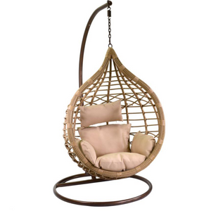 La seduta del dondolo è realizzata in polyrattan color ecrù, un materiale sintetico che imita l'aspetto del rattan naturale ma offre una maggiore resistenza e longevità. Il polyrattan è noto per la sua capacità di resistere alle intemperie, mantenendo inalterate le proprie caratteristiche estetiche e funzionali nel tempo.