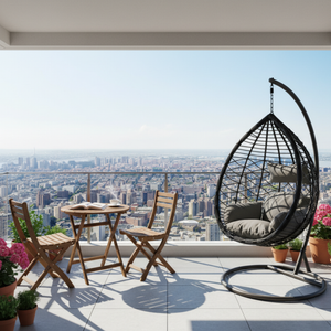Il cuscino in poliestere in tinta, incluso, garantisce una seduta confortevole e piacevole, ideale per momenti di relax all’aria aperta. Il sistema sospeso consente un movimento oscillante fluido, perfetto per giardino, terrazzo, patio o veranda.