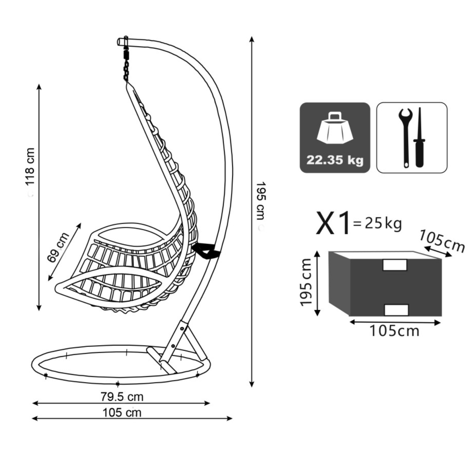 Il cuscino in poliestere idrorepellente da 250 gr, incluso e coordinato in colore grigio, garantisce una seduta confortevole e una maggiore resistenza all’umidità, rendendo il dondolo ideale per giardino, terrazzo, veranda o bordo piscina.