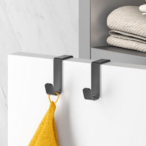 Il gancio è progettato per essere appeso direttamente sull'anta di un mobile da bagno, offrendo una soluzione immediata per appendere asciugamani, accappatoi o altri accessori, senza dover utilizzare attrezzi o praticare fori. Questa caratteristica lo rende estremamente versatile e facile da spostare o riposizionare secondo le necessità.