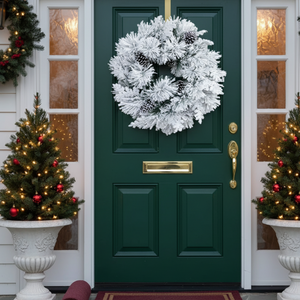 La ghirlanda innevata con pigne è perfetta per decorare porte, finestre o pareti durante le festività natalizie. Il design floccato riproduce l’effetto neve, mentre le pigne naturali aggiungono un dettaglio elegante e rustico.
