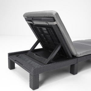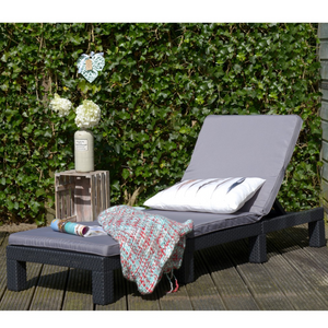 Lettino prendisole in resina design moderno finitura rattan con schienale regolabile e cuscino