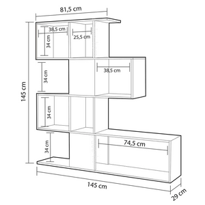 La libreria a muro "Poon" è un pezzo d'arredamento moderno ed elegante che si adatta perfettamente a qualsiasi ambiente, dall'ingresso all'ufficio o alla cameretta. La struttura è realizzata in legno, con una finitura in vernice bianca lucida e rovere che la rende facile da pulire.