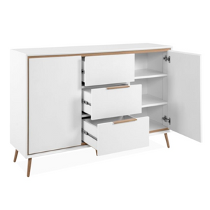 Madia 2 ante e 3 cassetti 135x90H bianco e quercia design moderno - Arona