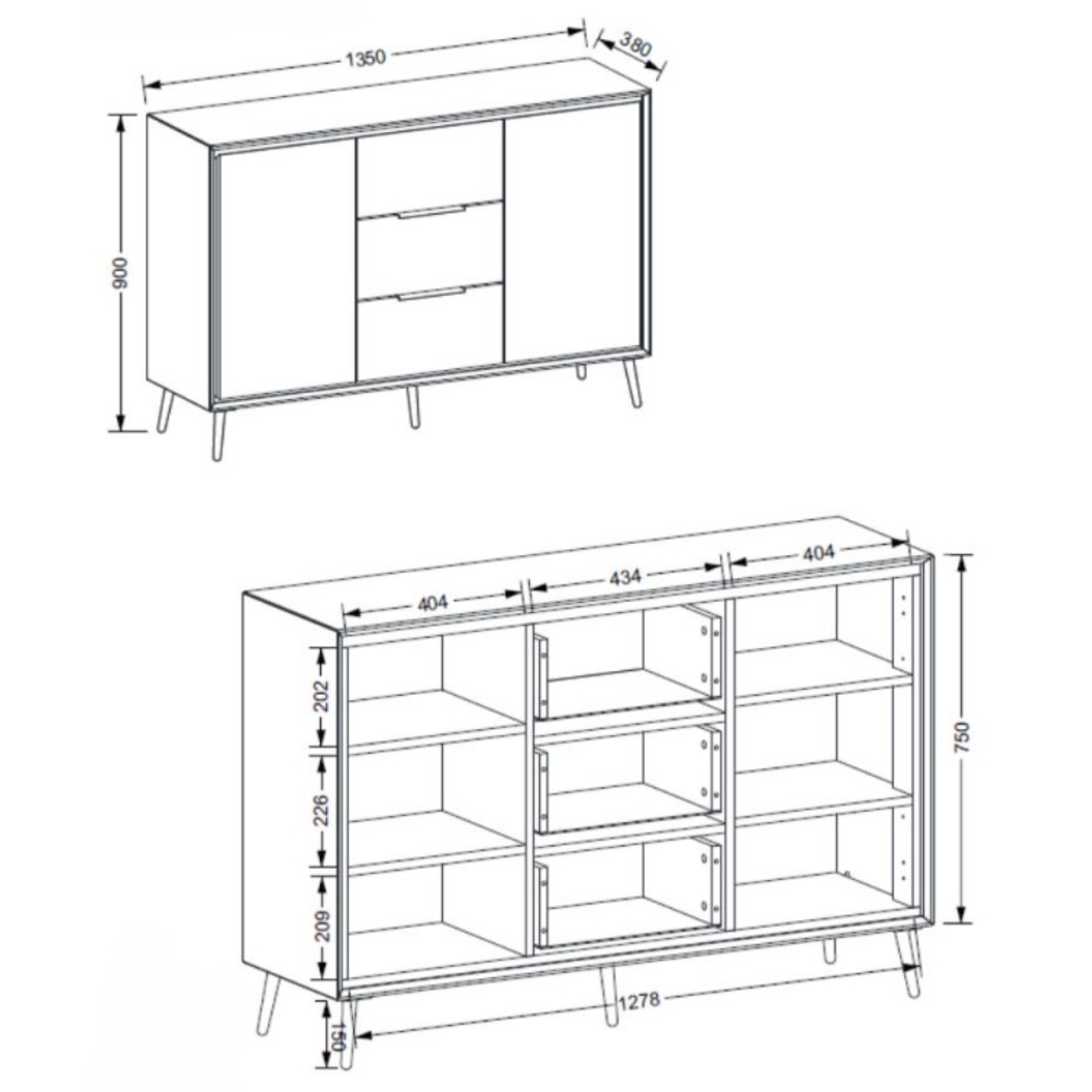 Sostenuta da cinque piedini in plastica che offrono stabilità e protezione per il pavimento, la madia Arona è la scelta ideale per un soggiorno o una sala da pranzo sofisticata che unisce funzionalità e design in un unico pezzo.