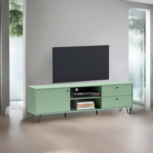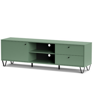 Mobile Porta Tv 2 cassetti 1 anta e vani a giorno color verde design moderno - Aldo