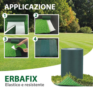 ERBAFIX è un tessuto non tessuto autoadesivo idoneo come banda di giunzione e fissaggio dei prati sintetici. Adatto per utilizzo sia interno che esterno, resiste nel tempo.