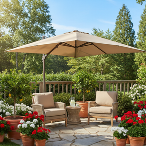 Elegante e funzionale, questo ombrellone da esterno con telo ecrù è progettato per offrire ampia copertura e massima versatilità in giardino, terrazzo o area relax.