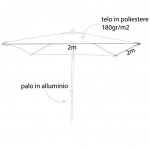 Le 4 stecche in alluminio (12 x 18 mm) assicurano una corretta tensione del telo e una buona stabilità dell’ombrellone. Grazie alle dimensioni compatte 2x2 m, il modello Nice si adatta facilmente a spazi contenuti senza rinunciare a stile e praticità.