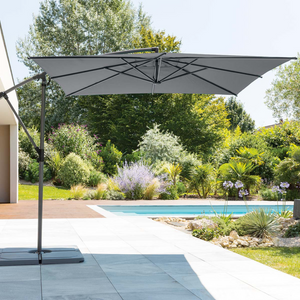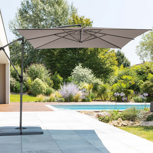 La sicurezza è una priorità per l'ombrellone "Manoa". È progettato per trovare posto sulla vostra terrazza, in giardino o a bordo piscina. È consigliabile stabilizzarlo con le lastre zavorrate.