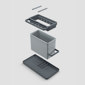 La struttura è supportata da piedini antiscivolo che garantiscono stabilità e aderenza al piano del lavello, evitando spostamenti accidentali durante l'uso. L'unità centrale dell'organizer è progettata per essere estremamente versatile, permettendo di posizionarla in 5 modi diversi, adattandosi così alle esigenze specifiche della tua cucina.