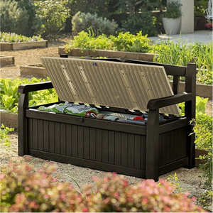 Realizzata in resina con una finitura effetto legno marrone, questa panchina offre un contenitore da 265 LT per riporre oggetti all'aperto in modo ordinato e protetto.