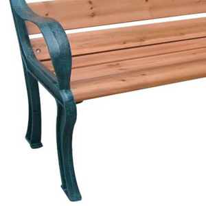 - Struttura in ghisa e seduta con doghe in legno naturale.