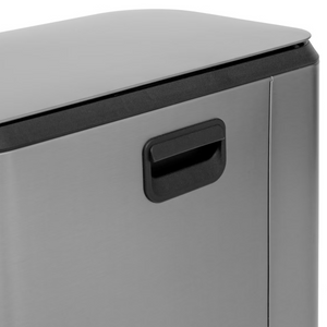 La pattumiera Mat da 50 litri è realizzata in acciaio inox, un materiale resistente e facile da pulire, ideale sia per ambienti interni che esterni.