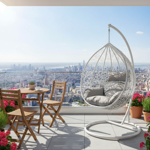 La poltrona a dondolo sospesa Giglio è la soluzione perfetta per creare un angolo relax elegante e confortevole in giardino, terrazzo o veranda.
