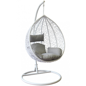 Poltrona a dondolo sospesa struttura in metallo seduta in wicker bianco - GIglio