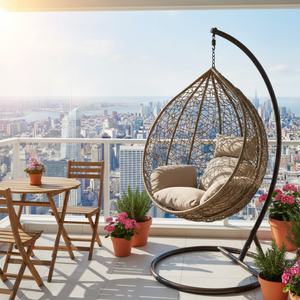 La poltrona a dondolo sospesa Giglio è la soluzione perfetta per creare un angolo relax elegante e confortevole in giardino, terrazzo o veranda.