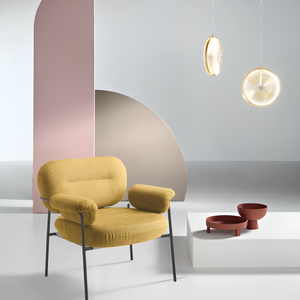 La struttura in metallo, robusta e resistente, conferisce stabilità alla poltrona, mentre il design slanciato delle gambe contribuisce a un’estetica leggera e contemporanea. Kian si distingue per le sue linee morbide e il profilo curvato, che la rendono un complemento d'arredo perfetto per soggiorni moderni, spazi lounge o angoli di lettura.
