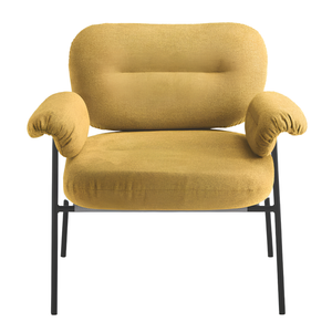 Poltrona da soggiorno design moderno in tessuto giallo e struttura in metallo - Kian