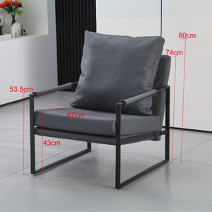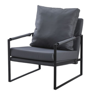 La poltrona da soggiorno Gimmy unisce design moderno e comfort, rendendola perfetta per ogni ambiente. La seduta in ecopelle di colore grigio scuro offre un aspetto sofisticato e resistente, mentre la struttura in metallo nero aggiunge un tocco di eleganza industriale.