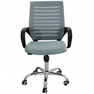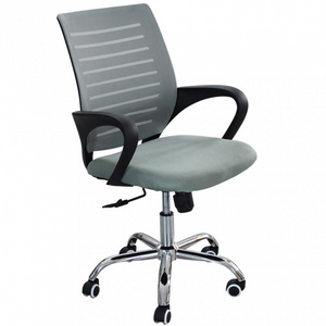 Poltrona da ufficio in tessuto grigio con braccioli e base a 5 ruote cromata - Lucy
