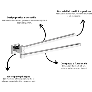 Porta asciugamani in acciaio inox e cromall porta salviette a snodo da parete - Bruma