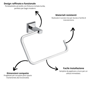 Il design elegante e minimale ad anello, con finitura cromata lucida, si adatta perfettamente a qualsiasi stile di arredamento bagno, dal classico al contemporaneo.