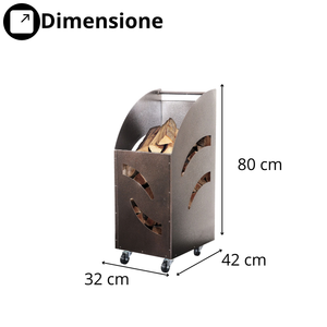 Porta legna a carrello in acciaio verniciato con manico e ruote per camino - Fuos