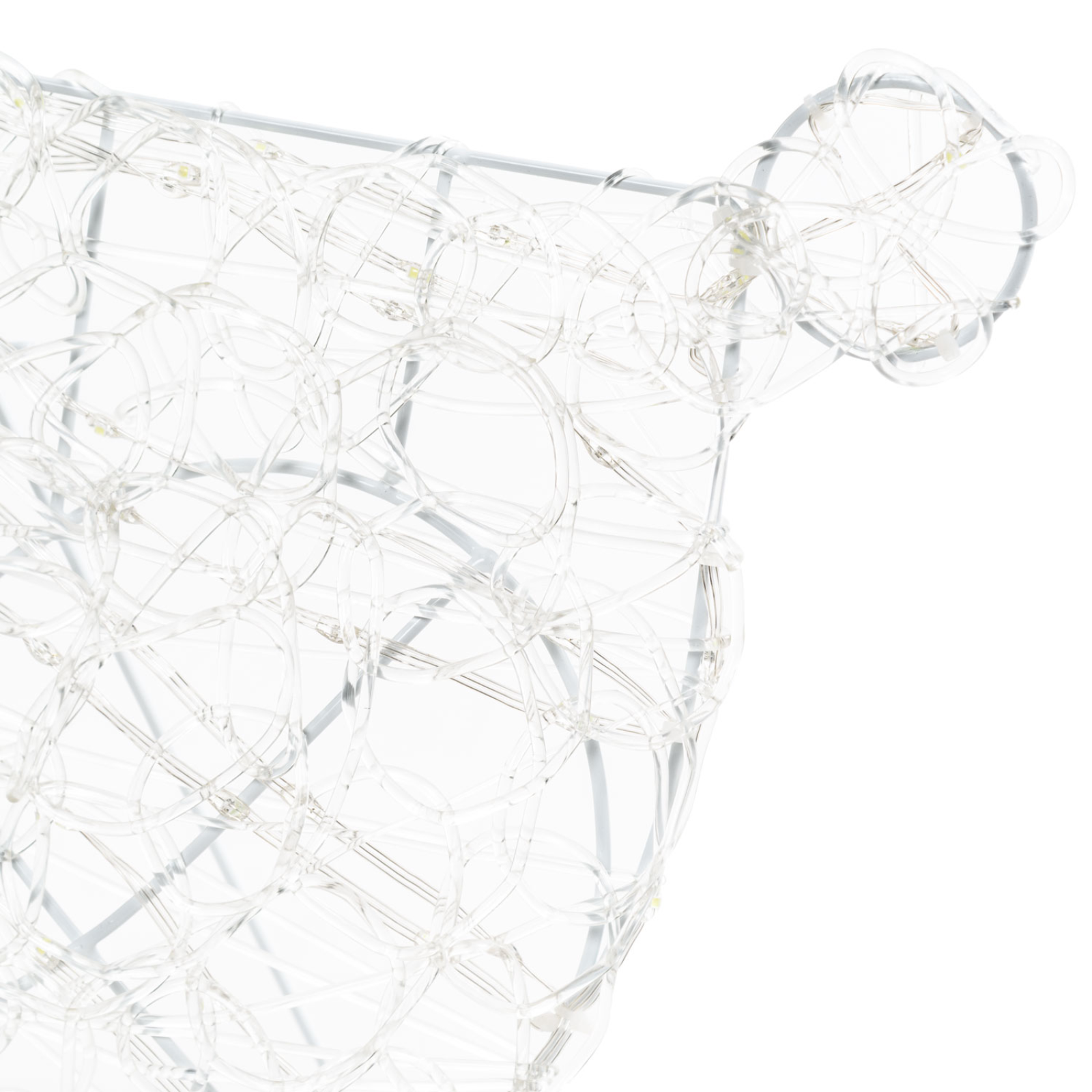 La Renna Galoppante H65 cm con Slitta 2D è una decorazione natalizia scenografica, realizzata in acrilico soft con telaio in metallo verniciato bianco. Dotata di 220 gocce LED bianco freddo ad alta luminosità 360°, crea un effetto luminoso elegante e suggestivo sia di giorno che di notte.