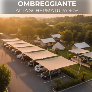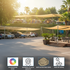 La rete ombreggiante in rotolo 80 gr/mq è realizzata in piattina HDPE resistente, progettata per garantire una schermatura solare fino al 90%.